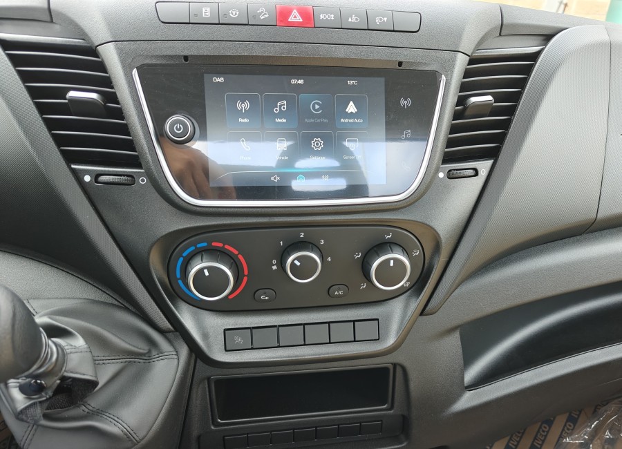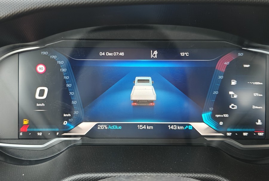 Caratteristiche e optional: Alzacristalli elettrici, Avvisatore acustico cintura di sicurezza conducente e passeggero, Balestre semiellittiche post., Barra stabilizzatrice anteriore, Barra stabilizzatrice posteriore, Cabina con finestratura posteriore, Cambio manuale a 6 marce, Cerchi in acciaio, Chiusura centralizzata con telecomando, Panca biposto con cinture a 3 punti, Rivestimento posteriore cabina, Sterzo regolabile in inclinazione e profondità, Vetri atermici e azzurrati, Sistema ABS 9 / ASR 9 / ESP 9 + Hill Holder, Adaptive Cruise Control - A.C.C., Airbag autista + pass., Avvisatore acustico di retromarcia, Climatizzatore manuale, Copricerchi in plastica, Fari fendinebbia, Maniglia salita in cabina lato guida e passeggero, Quadro strumenti a colori TFT (km/h), Ruota di scorta, Autoradio Bluetooth Digitale (DAB) e comandi al volante, Sedile autista 3° molleggiato, Sensori di parcheggio posteriori.